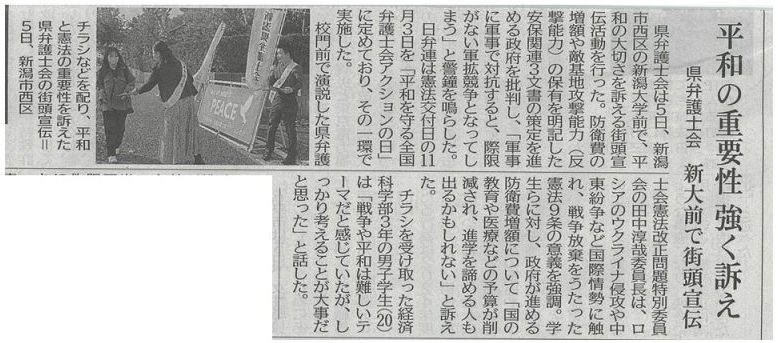 Published 2025年11月6日 at 778 × 343 in 新潟大学前で宣伝してきました(平和を守る全国弁護士会アクションの日)。.